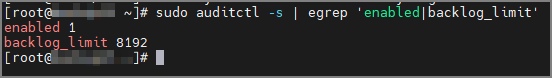 sudo auditctl -s | egrep 'enabled|backlog_limit'