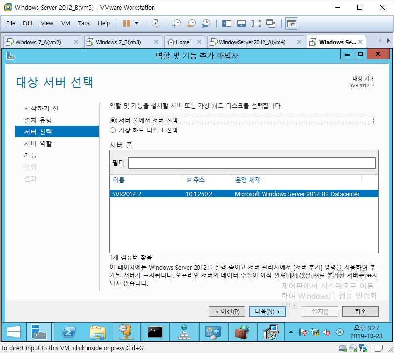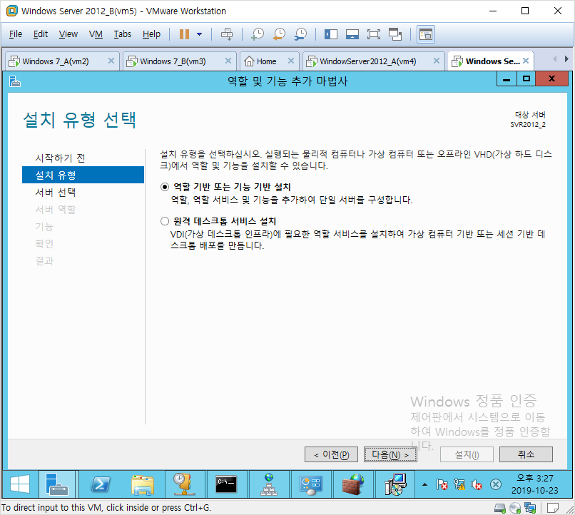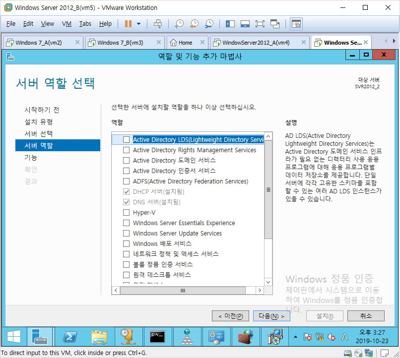 1. 역할 및 기능 추가 마법사에 들어가서 다음 버튼을 누른다.