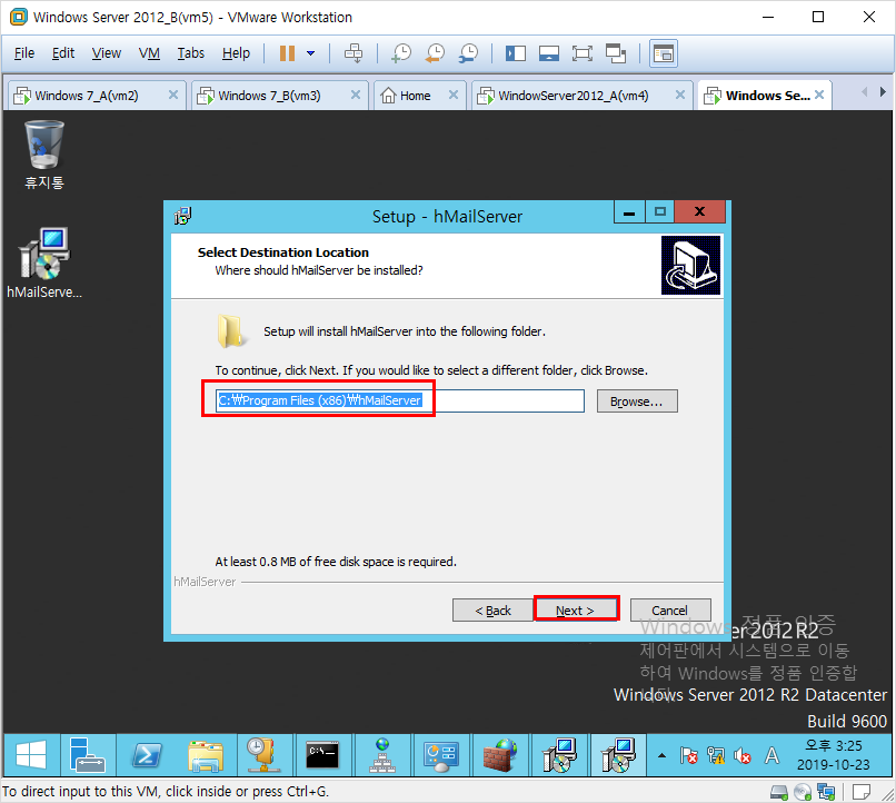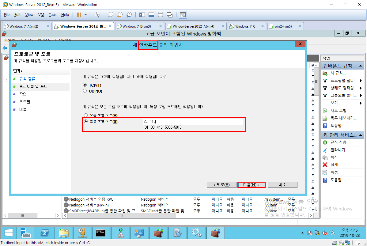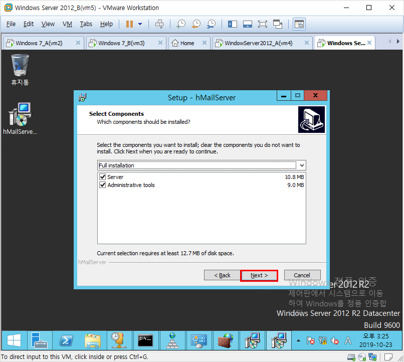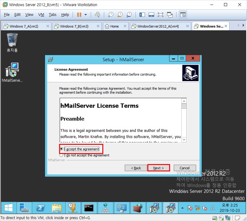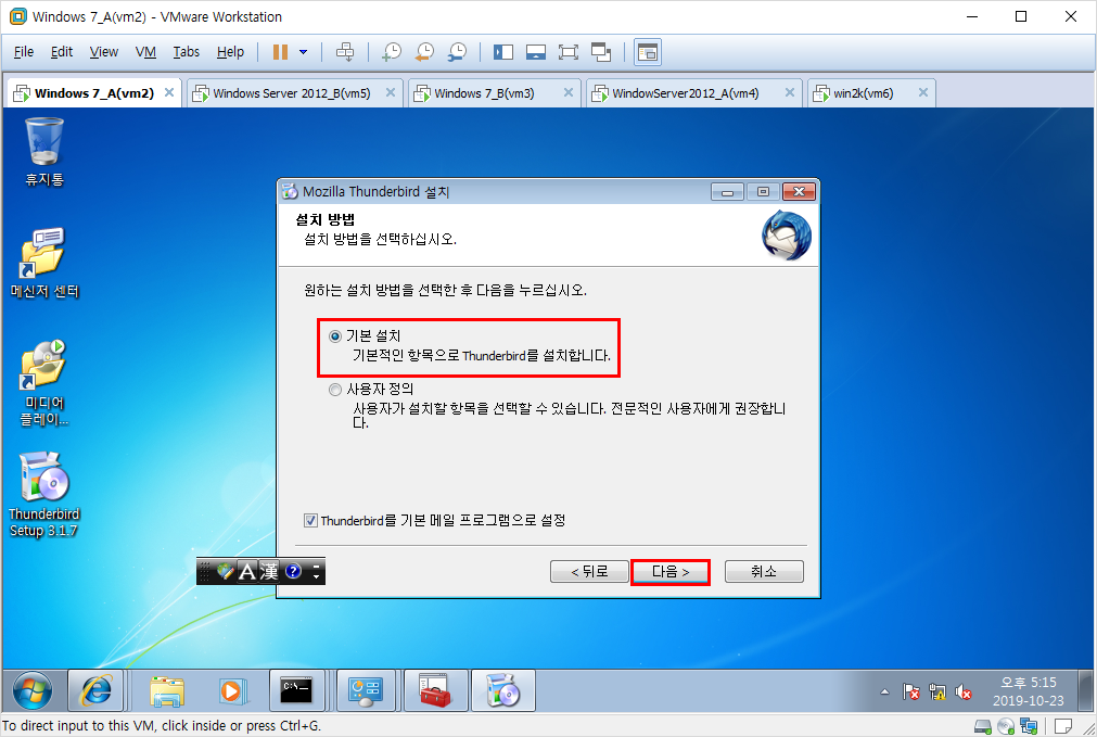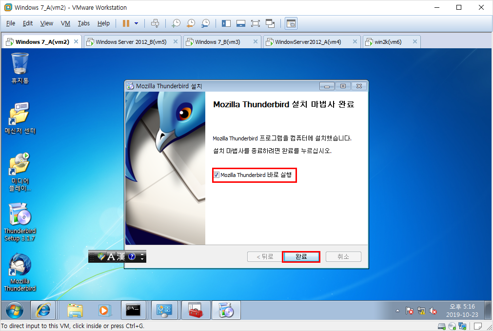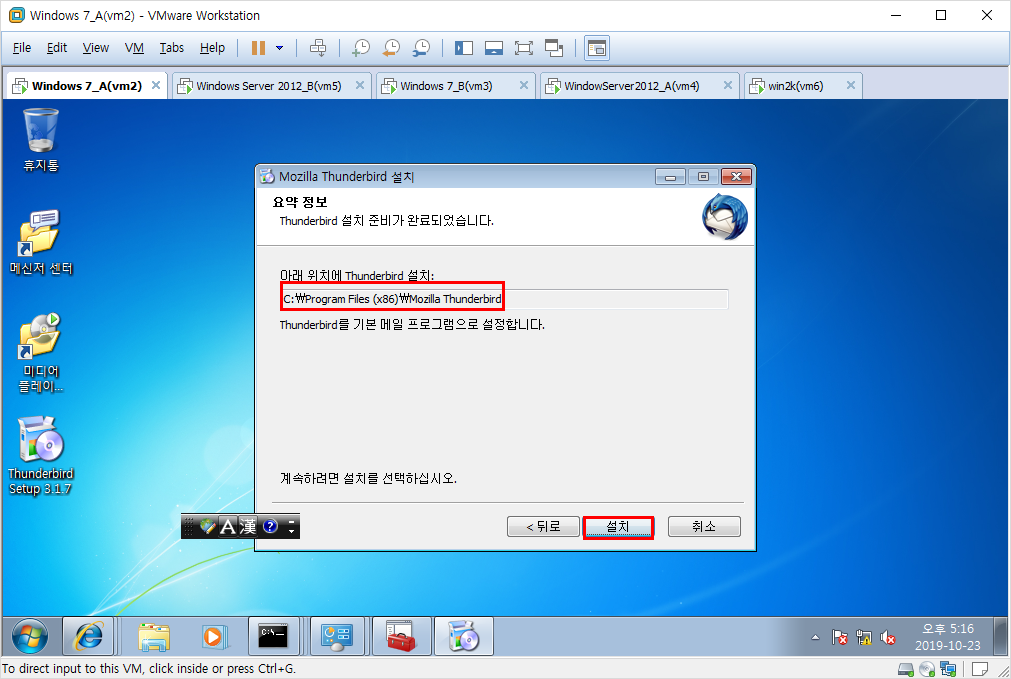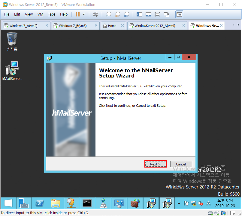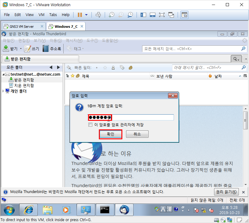 - VMnet2번 Window7 PC(1번 PC) 사용자가 다른 네트워크 대역인 VMnet9번 Window7 PC(2번 PC) 사용자에게 메일을 주고받으려고 한다.