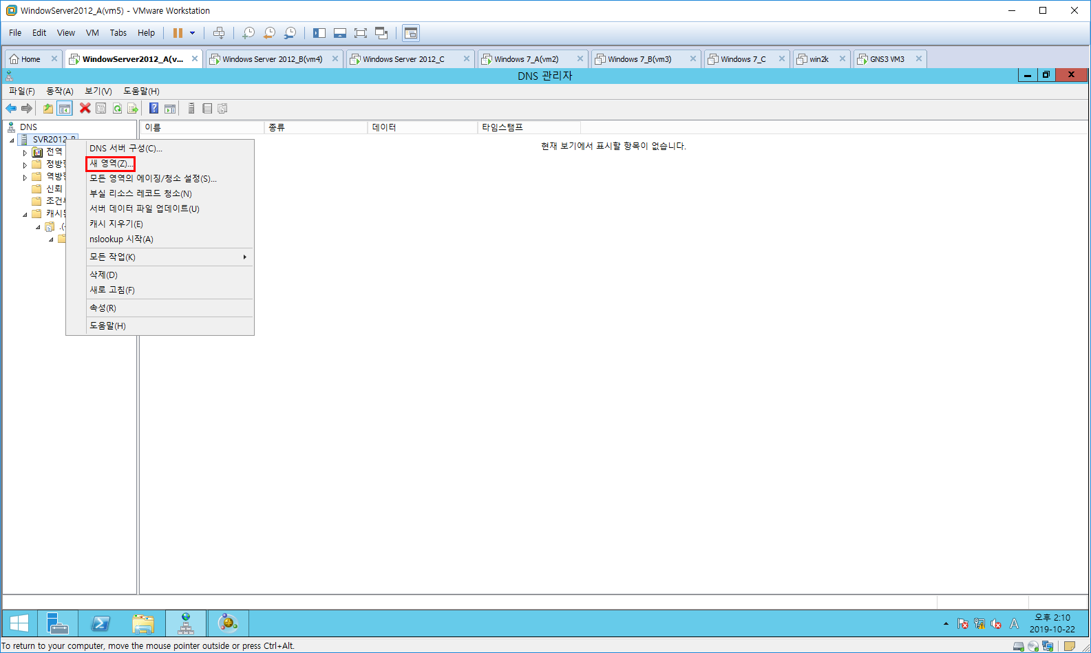 1. 서버이름을 우클릭 한 후 새영역(Z)를 클릭한다.