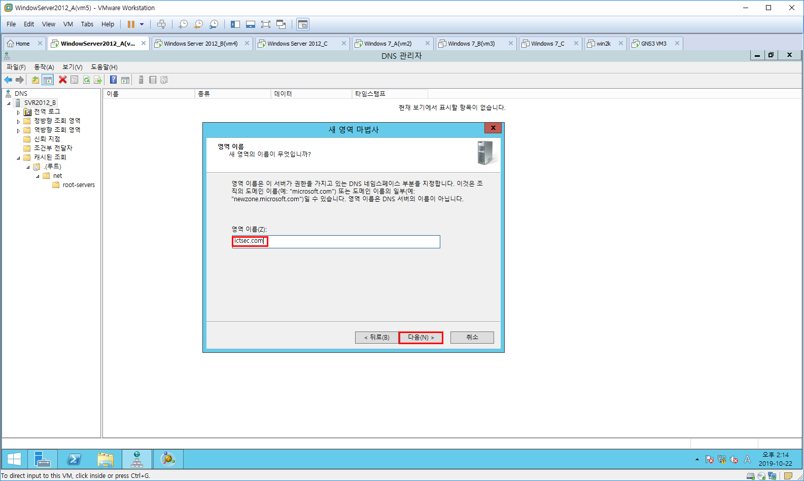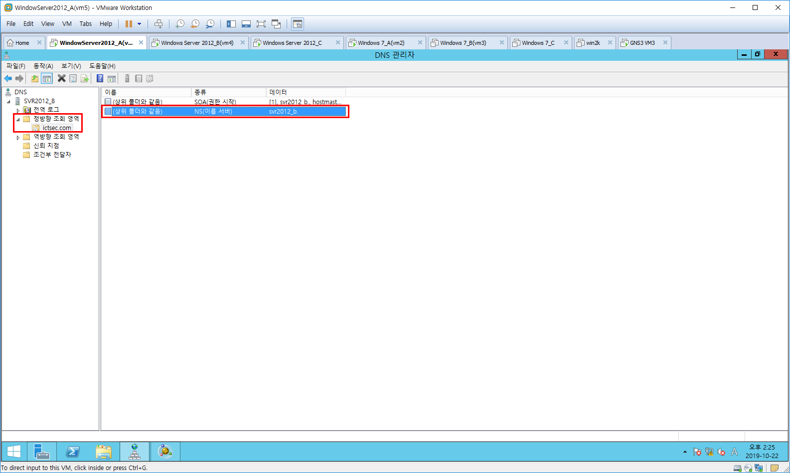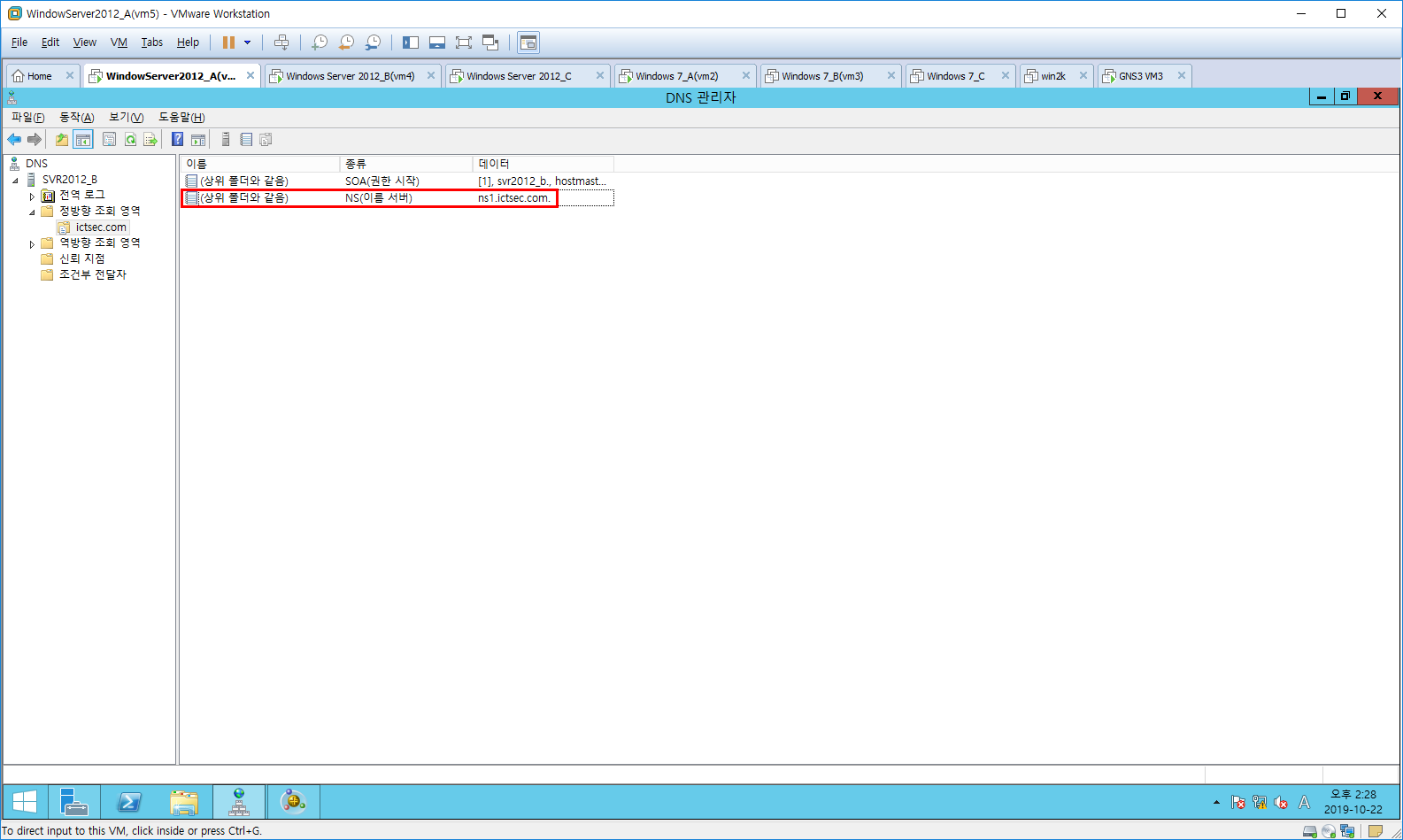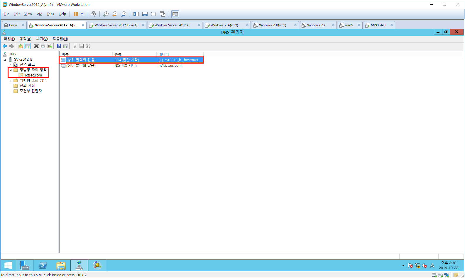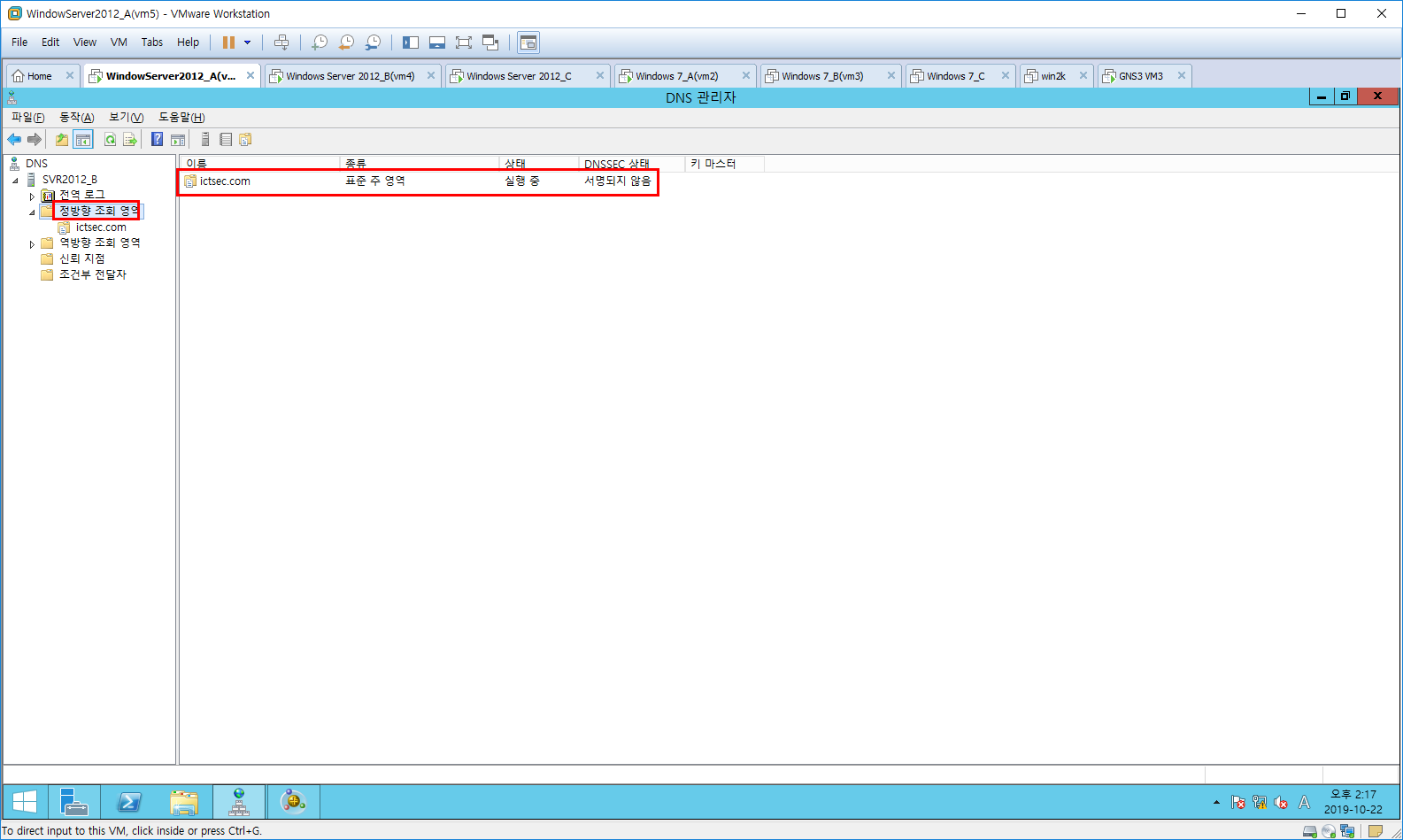 9. 정방향 조회영역을 클릭한 후 ictsec.com을 클릭한다.