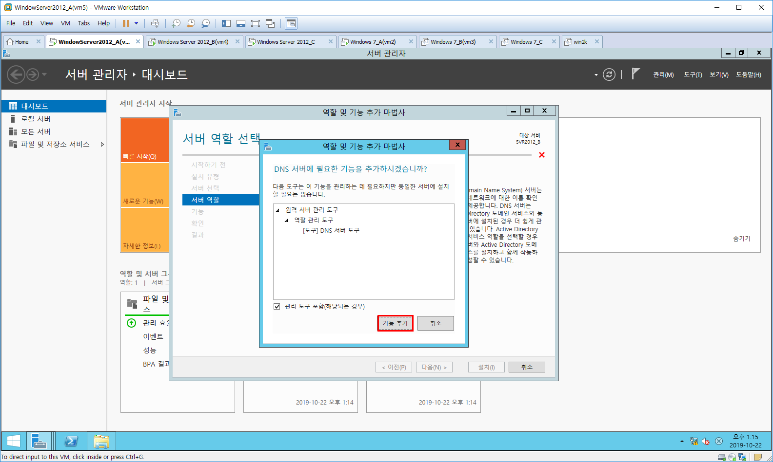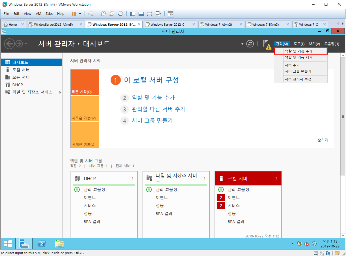 1. 관리 → 역할및 기능 추가를 클릭한다.