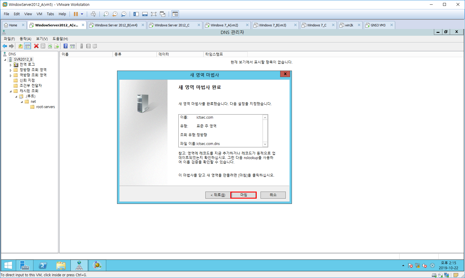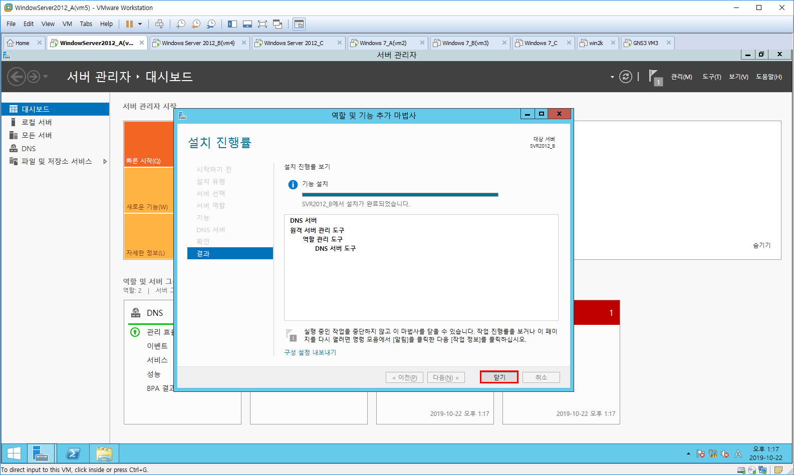 10. DNS 설치가 마무리되면 닫기 버튼을 눌러 마무리 한다.