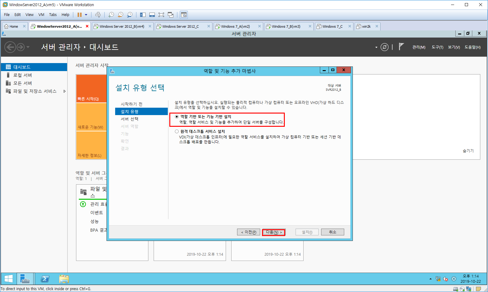 3. 설치유형 선택에서 역할 기반 또는 기능 기반 설치 체크 후 다음 버튼을 클릭한다.