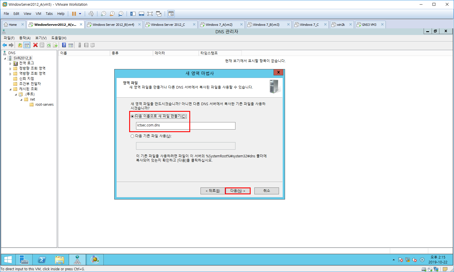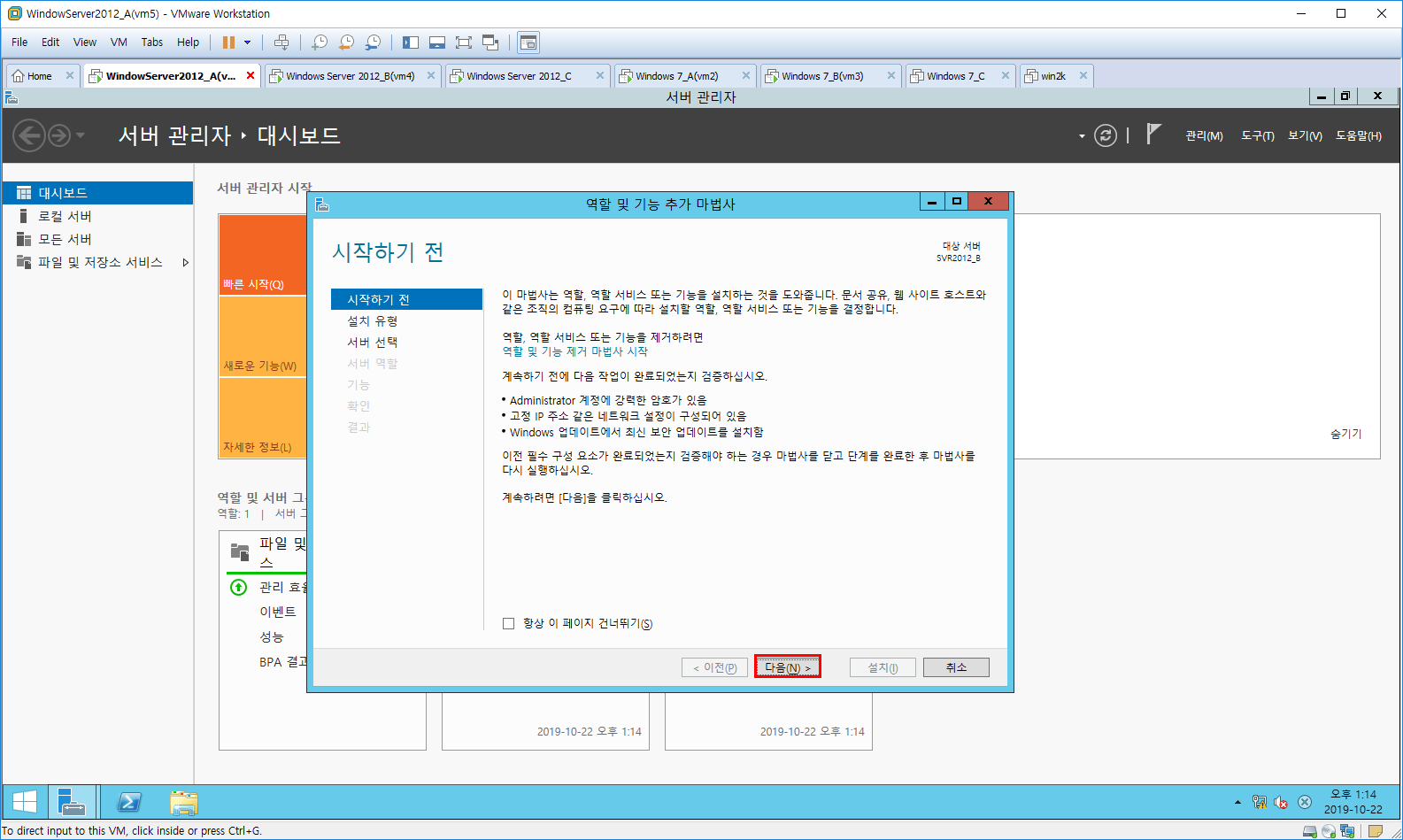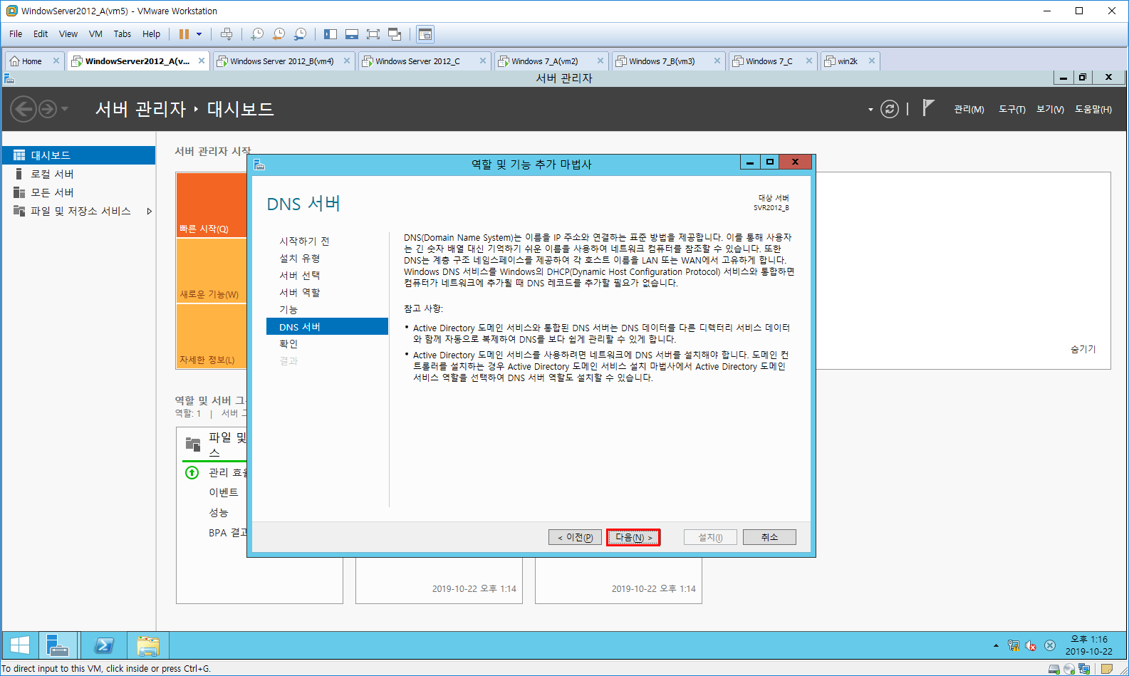 4. 현재 윈도우2012서버의 이름이 맞는지 확인한 후 다음 버튼을 클릭한다.