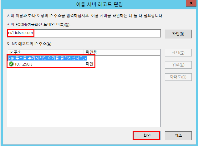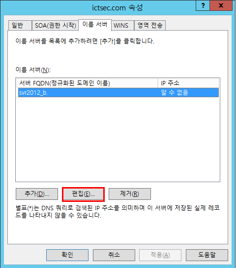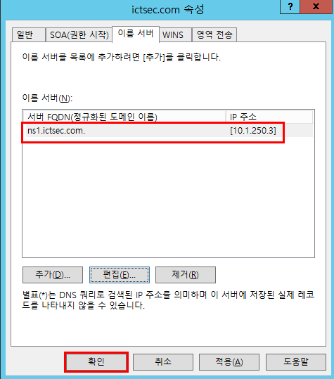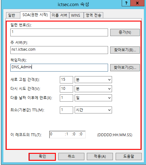 16. SOA 속성의 주서버를 바꾸고 확인 버튼을 클릭한다.