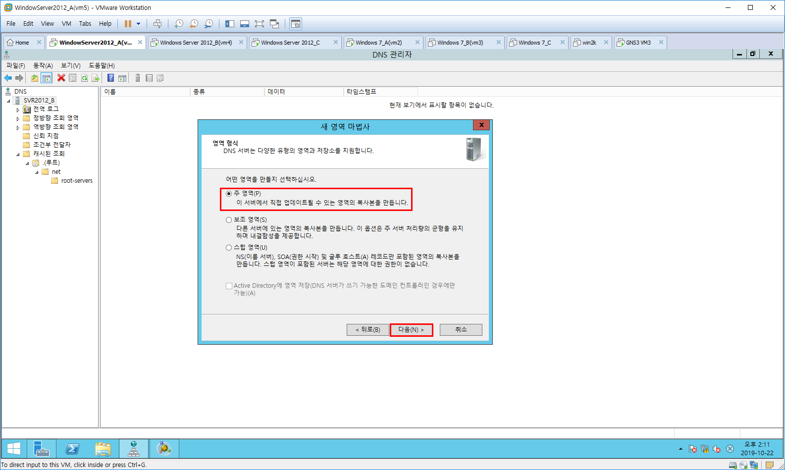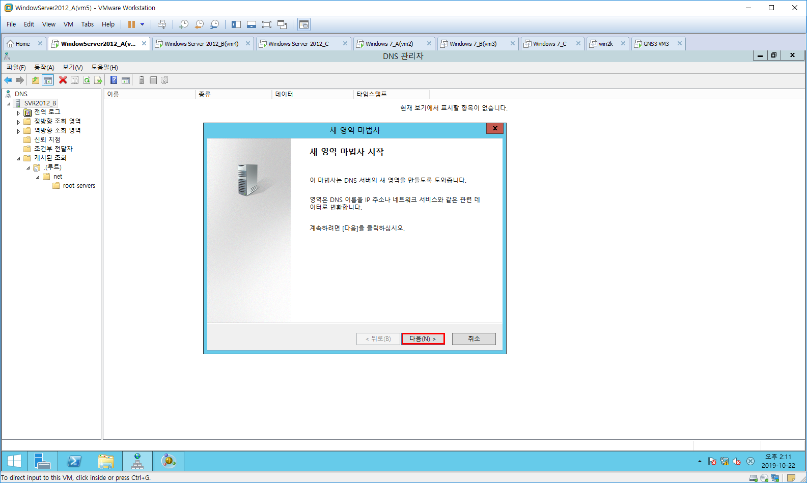 2. 새영역 마법사에서 다음 버튼을 클릭한다.