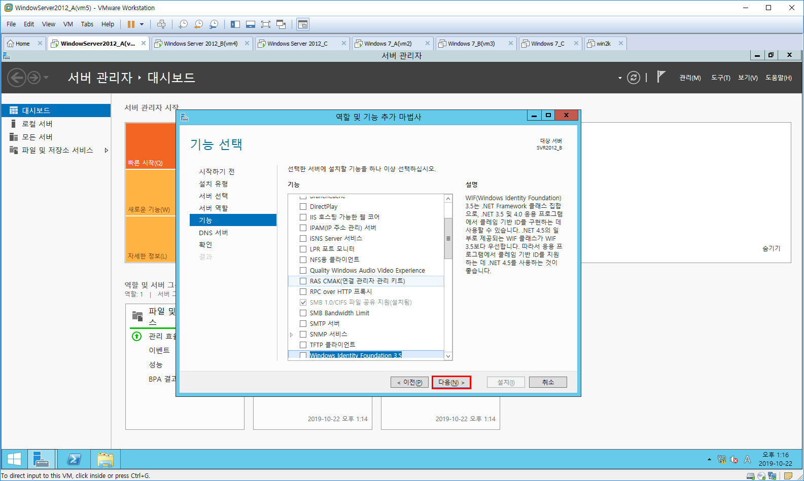 7. 기능 선택 항목에서 다음 버튼을 클릭한다.