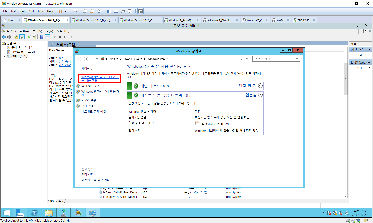 14. Window 방화벽을 통해 앱 또는 기능 허용을 클릭한다.