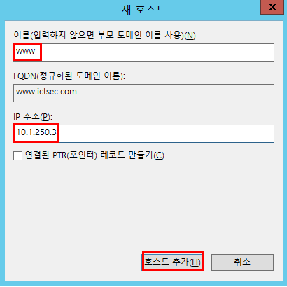 18. 이름은 www로 설정한 후 해당 서버의 IP주소를 입력한다.