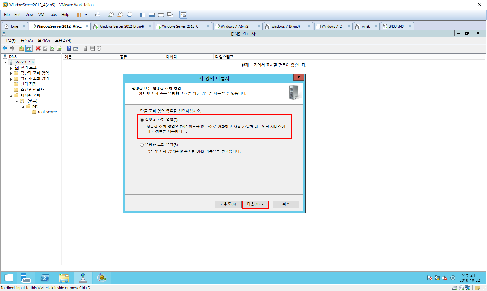 4. 정방향 조회 영역을 체크한 후 다음 버튼을 클릭한다.