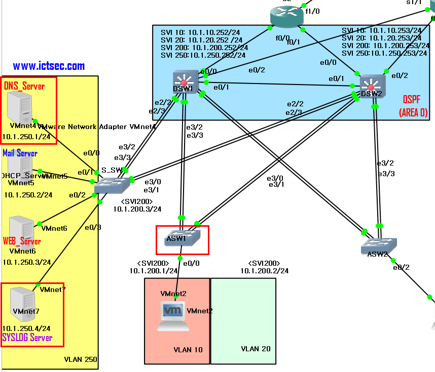 1. DNS 서버에 각 스위치이름을 DNS 서버에 등록한다.
