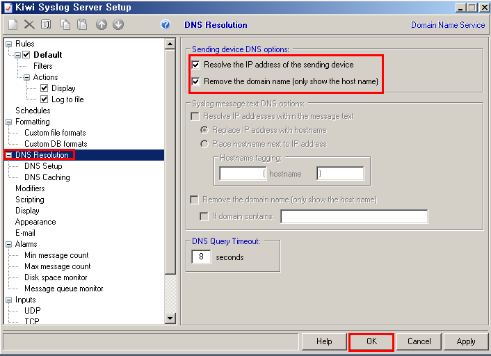 log 정보를 DNS 서버를 통해 도메인 이름으로 설정