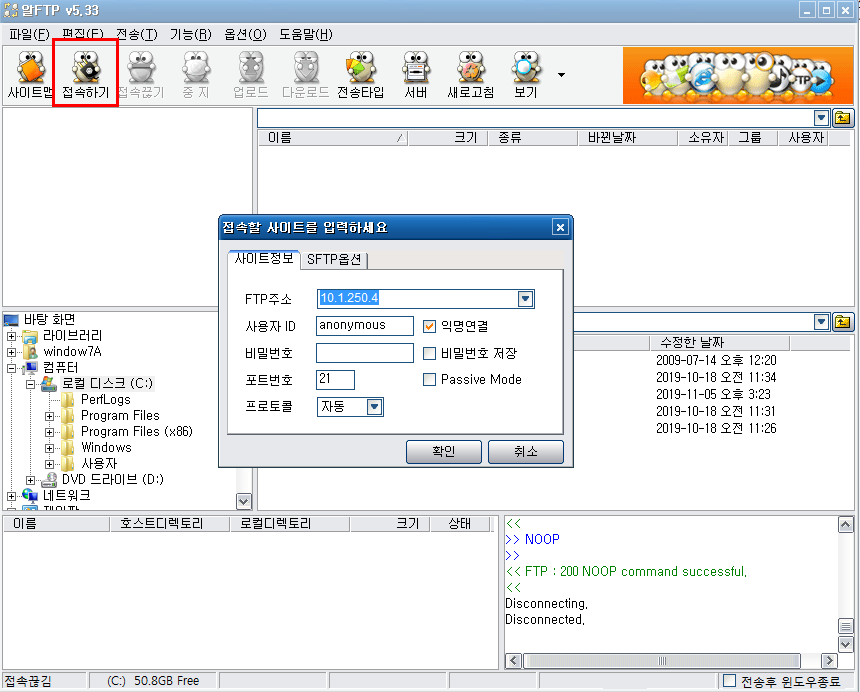 - Target PC에서 FTP를 접속하면 Attacker PC에서 중계 처리까지 해 주었기 때문에 겉 보기에는 정상적으로 접속이 가능하다.
