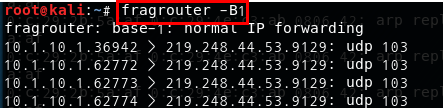- fragrouter -B1 명령어를 통해 패킷들을 중계 처리해주어서 응답 처리도 완료해 준다.