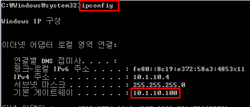 - DHCP를 재할당 받은 후 IP 주소를 확인해 보면 Gateway 주소가 10.1.10.254 가 아닌 Attacker IP(10.1.10.100)로 변경된 것을 확인할 수 있다.