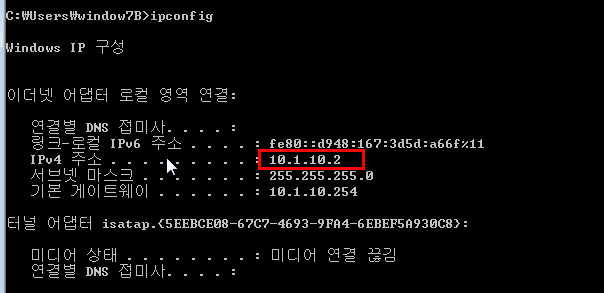 - DHCP 주소를 설정하기 전에는 이전에 DHCP 서버에서 받아온 정보인 10.1.10.2로 설정되어 있다.