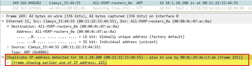 - Client의 IP 주소(10.1.10.200)의 MAC 주소가 Attacker가 설정한 MAC 주소로 바뀐것을 확인할 수 있다.